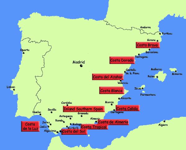Mapa do sul da Espanha resorts